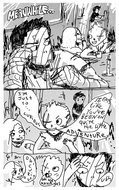 Follow Juice and Sally as they explore the Meat Cave and navigate a hilarious web of bizarre friends, lovers, and enemies. Along the way, hang out with jilted boyfriend Edward the Snake Prince, sexy meddler Main Marian, smiling Rolo, power-hungry Ben, and the mysterious Mothball the Cat. Also, there’s a mysterious pouch and a weird power cube.