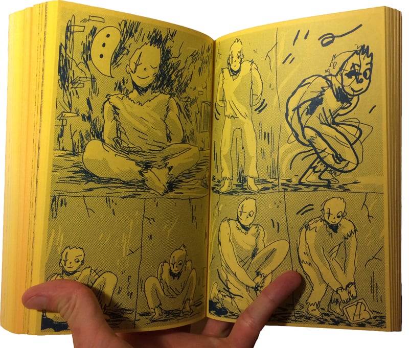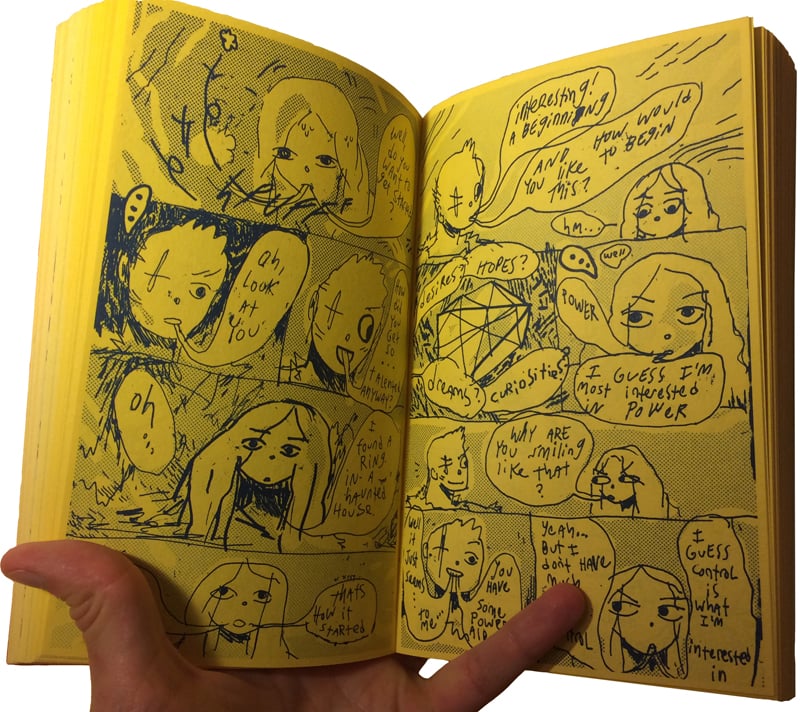 Indigo ink on a rainbow of yellow pages, 392 pages. 1lb 6oz.